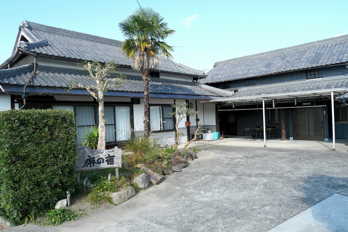 古民家民宿「麻の宿 本館」と「麻の宿 別館」は、三豊市高瀬町下麻の農村地帯にある、築70年の農家の母屋と納屋をリノベーションして、民宿にしたものです。