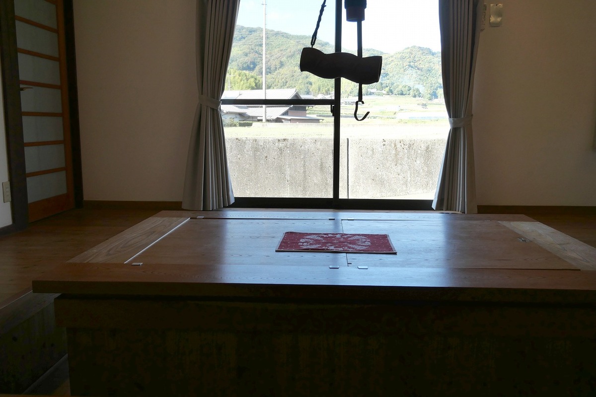 - 最大14名座れる大きな囲炉裏のある居間です。戸外の景色を眺めながら、お食事や談笑してください。エアコンと足元暖房もあって、冬でも快適です。(囲炉裏は使用不可)
